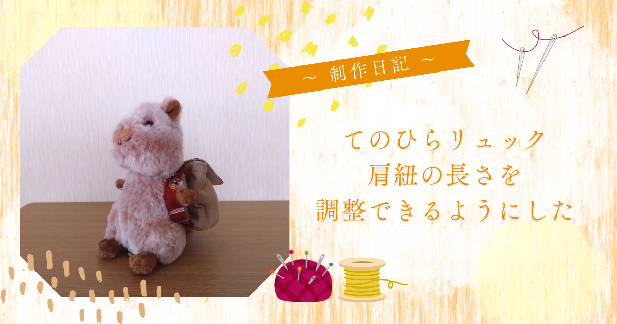 でも、「ぬいぐるみさんに背負わせたい!」ってご購入くださるお客様が増えて、ぬいぐるみさんに合わせて紐の長さが調整できるのは結構メリットかも。。