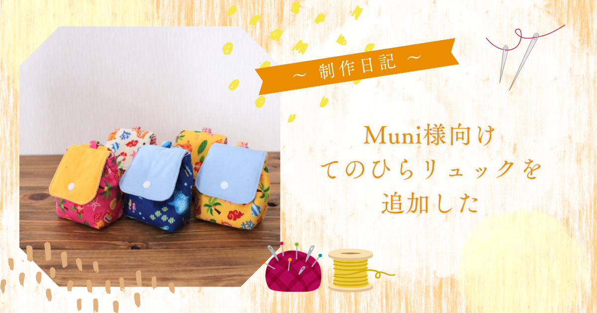 委託販売でお世話になってるハンドメイドギフトMuni様に納品する用にてのひらリュックを作りました。
